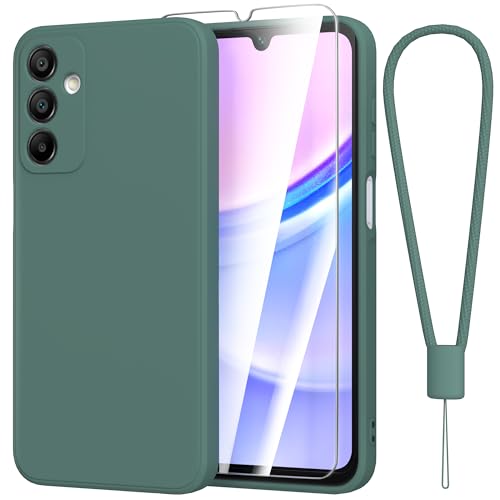 Fyriswho Coque Compatible avec pour Samsung Galaxy A15 4G / 5G + 1 Pièces Verre Trempé, Souple Silicone Mince Étui Protection Anti-Rayures Housse pour Samsung Galaxy A15 4G / 5G (6.5") - Vert foncé