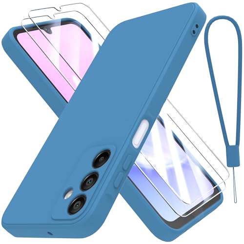 THIYUFUNS Coque pour Samsung Galaxy A15 4G / 5G avec 2 Verre trempé,Silicone Liquide Intérieur Microfibre Etui de Protection Contre Les Chutes Antichoc Housse pour Samsung Galaxy A15 (6.5") - Bleu