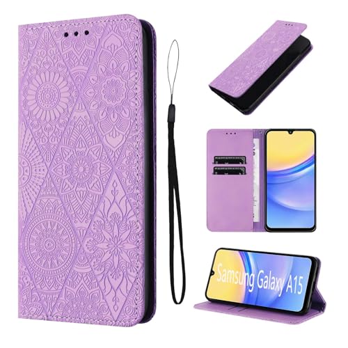 IMIRST Étui Housse pour Samsung Galaxy A15 Stand Support Porte-Cartes de Crédit Fermeture Magnétique Portefeuille Cuir Coque pour Samsung Galaxy A15 5G. LD Mandala Purple
