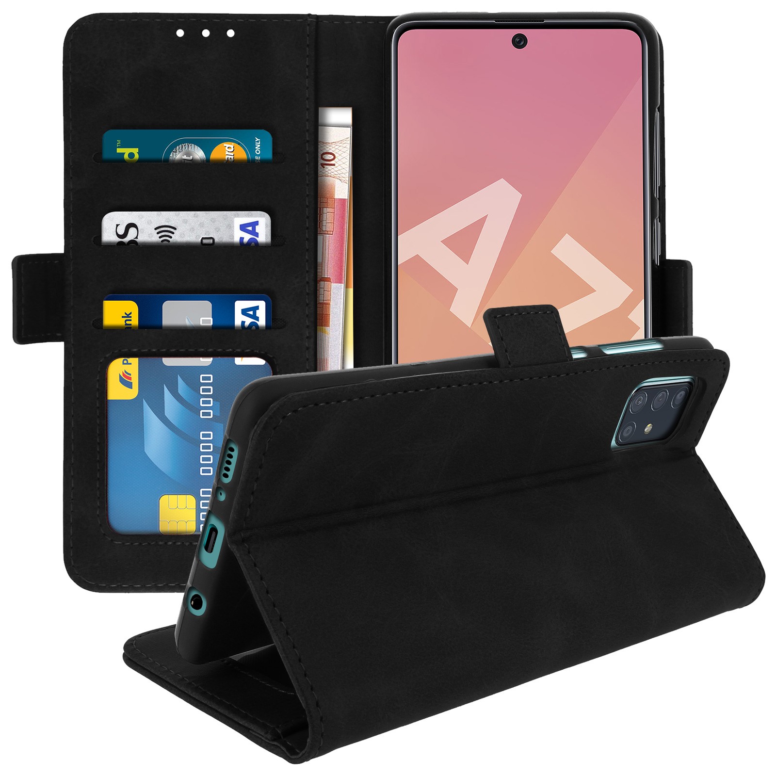 Housse pour Samsung Galaxy A71 Étui Folio Porte-cartes Fonction Support Noir
