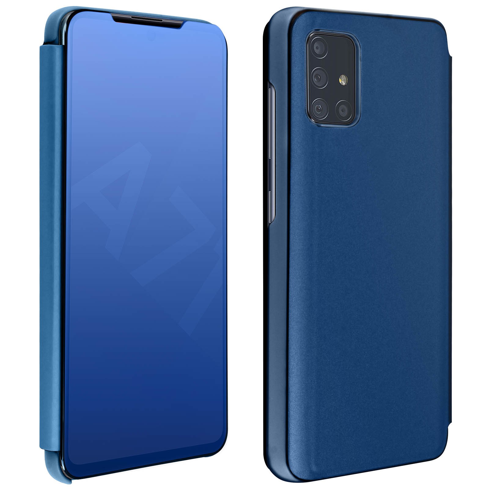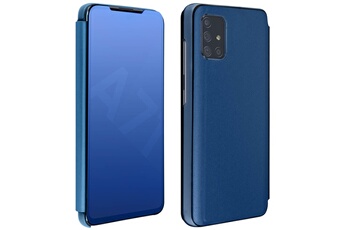 Housse pour Samsung Galaxy A71 Clapet Effet Miroir Support Vidéo Bleu