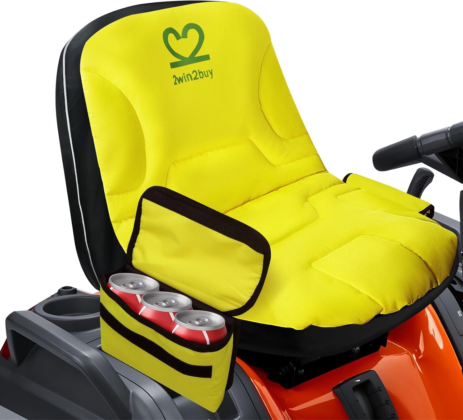 Solaughguy Housse de siège de tracteur avec rembourrage confortable et design résistant aux intempéries pour tondeuse à gazon et machines agricoles avec sacs de rangement et de restauration