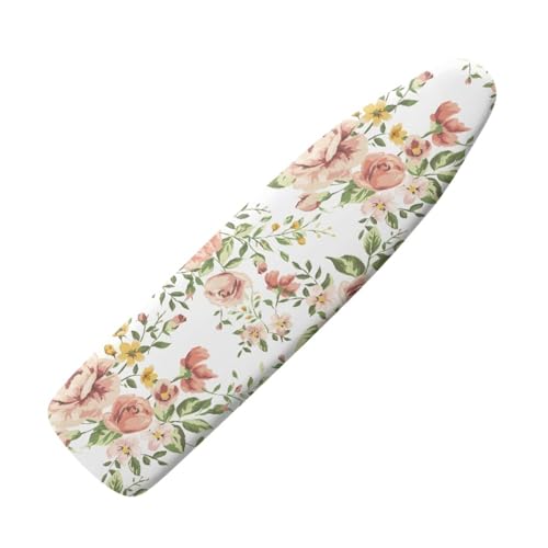 Housse Planche à Repasser Fleurs Roses Vert Housse Table a Repasser Centrale Vapeur Décoration Polyester Respirant Lavable en Machine Résistant à la Chaleur XL