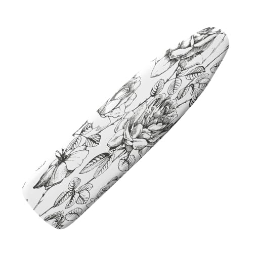 Housse Planche à Repasser Fleurs Noires Blanches Housse Table a Repasser Centrale Vapeur Décoration Polyester Respirant Lavable en Machine Résistant à la Chaleur 2XL