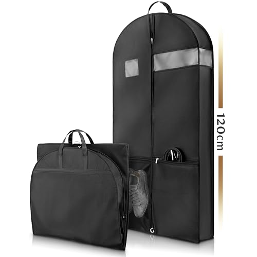 Housses de Vêtements 60 x 120 CM,Pliable Housse de Rangement Vetement Penderie,avec Fenêtre Transparente,pour Housse de Costume Homme, Manteaux, Robes,Robe de Mariée(Noir,3PCS)