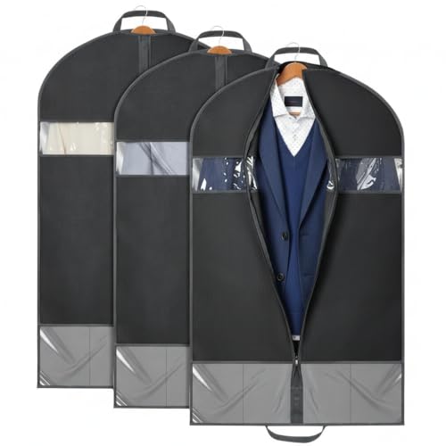 Housses de Vêtements 60 x 80 CM,Pliable Housse de Rangement Vetement Penderie,avec Fenêtre Transparente,pour Housse de Costume Homme, Manteaux, Robes,Robe de Mariée(Noir,3PCS)