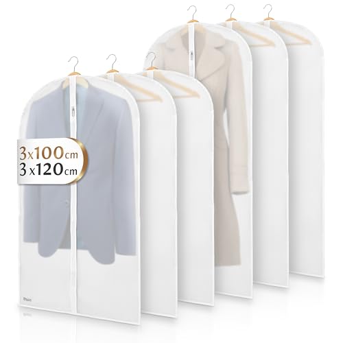 Bruce.® 6x Premium Housse Vetements à Suspendre Transparente 3x 100x60cm & 3x 120x60cm, Pliable Housse de Rangement Vetement Penderie and Voyage, Idéale comme Housse Costume Homme, Robe de Mariée