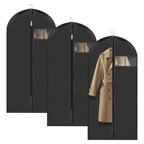 Housses de Vêtements 60 x 140 CM,Pliable Housse de Rangement Vetement Penderie,avec Fenêtre Transparente,pour Housse de Costume Homme, Manteaux, Robes,Robe de Mariée(Noir,3PCS)