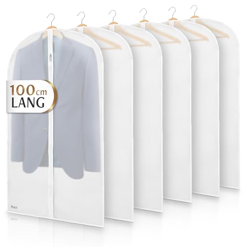 Bruce.® 6x Premium Housse Vetements à Suspendre Transparente 100x60cm, Pliable Housse de Rangement Vetement Penderie and Voyage, Idéale comme Housse Costume Homme, Robe de Mariée & Robe Longue