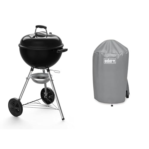 Weber Barbecue à Charbon Original Kettle 47cm - Barbecue E-4710 à Couvercle, Thermomètre, Trépied, Roues - Noir & Accessoire Barbecue 7175 - Housse Barbecue Charbon 47 CM