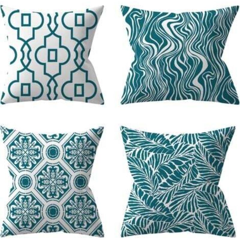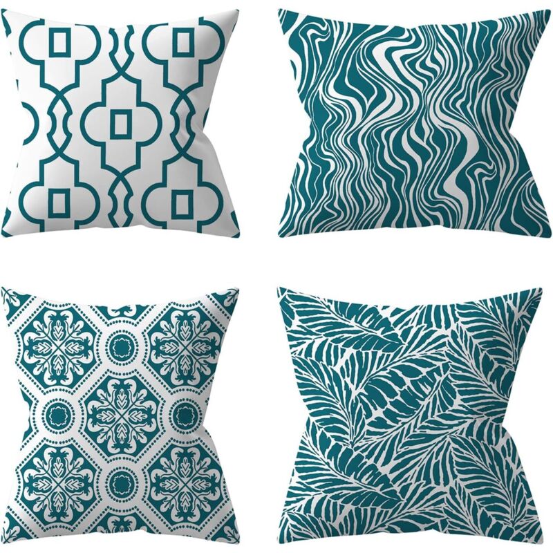 Lot de 4 Housses de Coussin d'extérieur, Plante Verte,Coussins Décoratifs pour Jardin (45 x 45 cm, Turquoise) - Aiperq