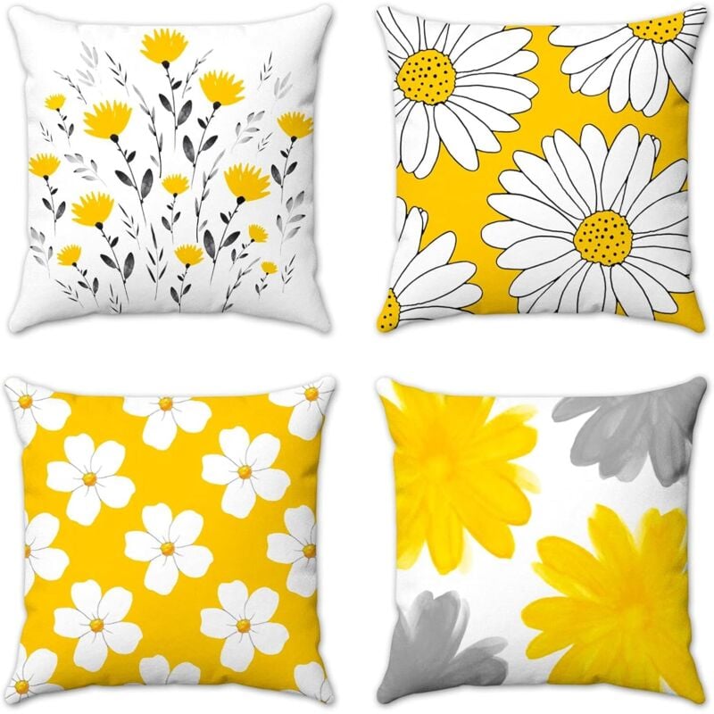 Lot de 4 housses de coussin d'extérieur, motif fleur de moutarde jaune, marguerite, coussin de jardin, décoration d'intérieur pour canapé, salon,