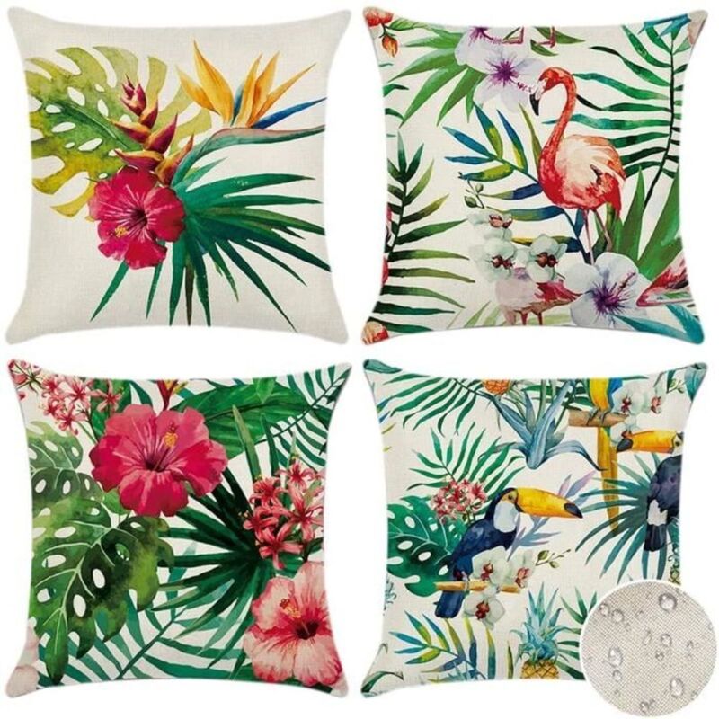 Linghhang - Lot de 4 (45 x 45 cm – Plantes tropicales 01) Housses de coussin d'extérieur imperméables à motif de plantes tropicales vertes pour