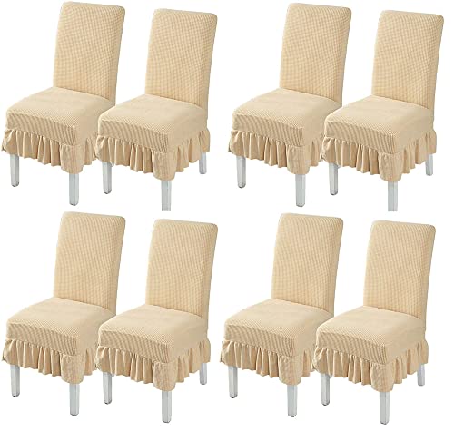 VZXATYOP Housses De Chaises Extensibles en Spandex avec Jupe Amovible Et Lavable, for Salle À Manger Hôtel Cuisine Cérémonie(Yellow,8 pcs)