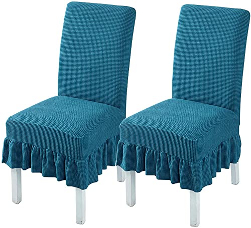 VZXATYOP Housses De Chaises Extensibles en Spandex avec Jupe Amovible Et Lavable, for Salle À Manger Hôtel Cuisine Cérémonie(Blue,2 pcs)