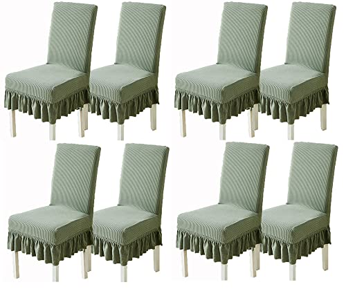 VZXATYOP Housses De Chaises Extensibles en Spandex avec Jupe Amovible Et Lavable, for Salle À Manger Hôtel Cuisine Cérémonie(Green,8 pcs)
