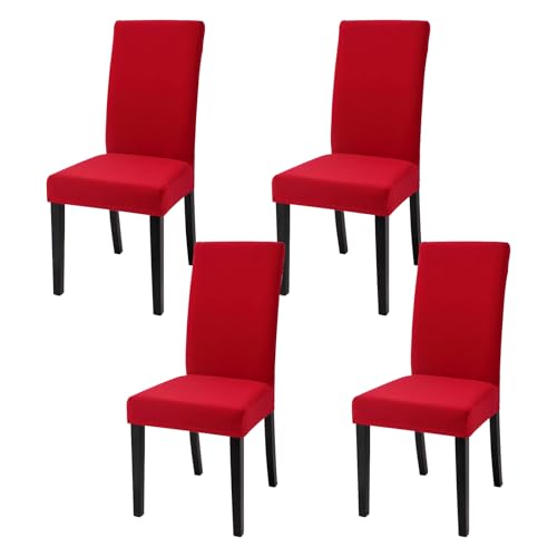 FRKOKRFA Lot de 4 housses de chaises extensibles pour salle à manger, amovibles, lavables et modernes, pour maison, hôtel, banquets, décorations et mariages (rouge)