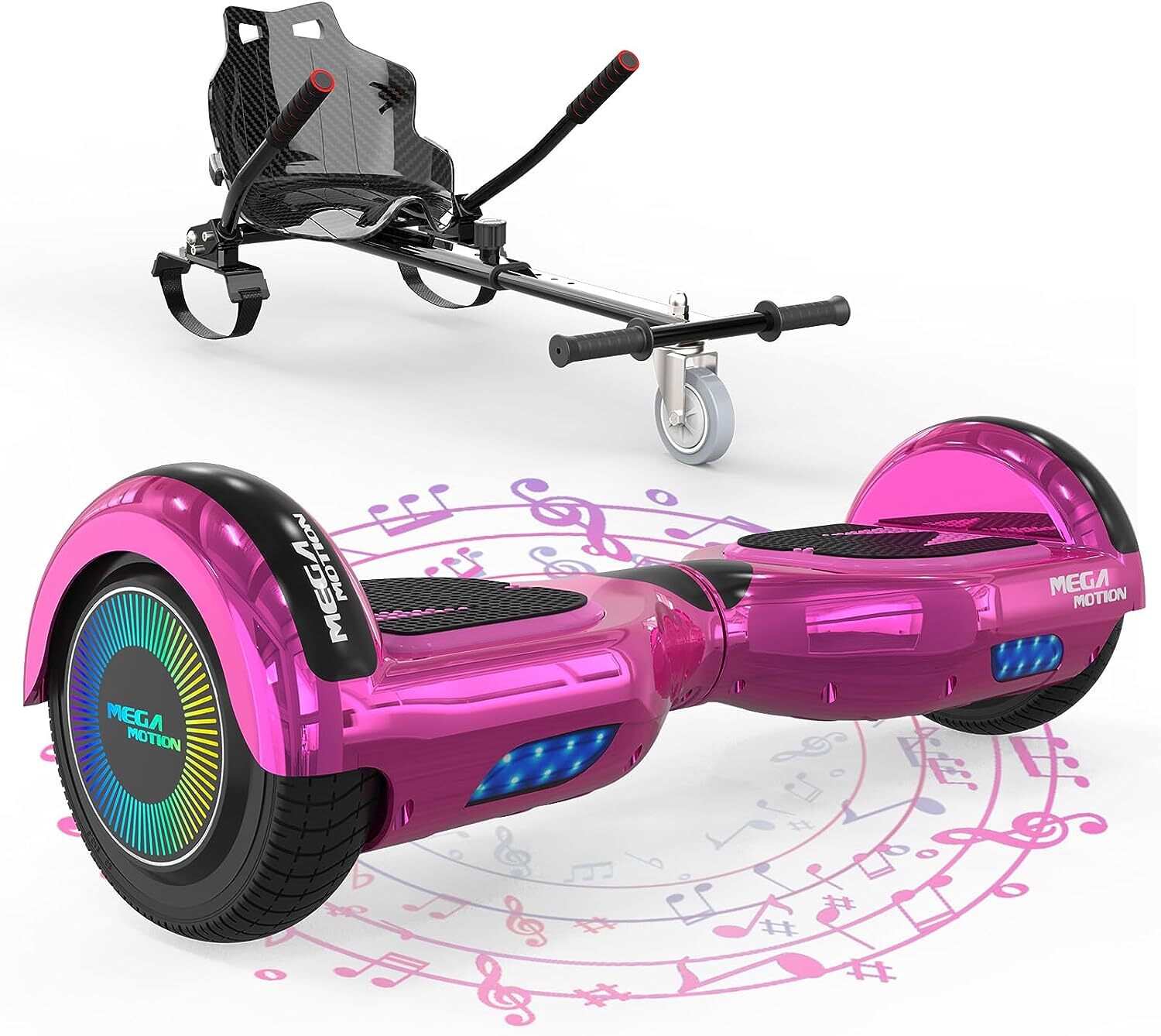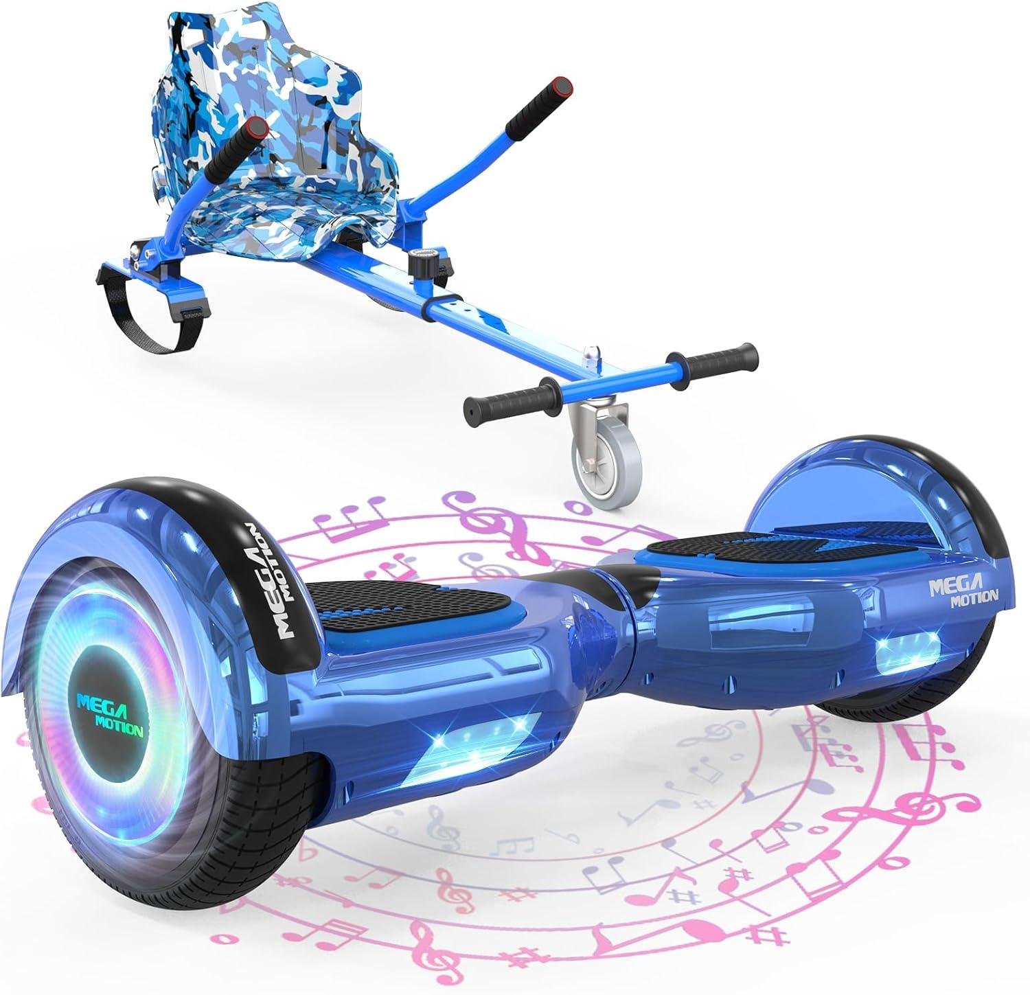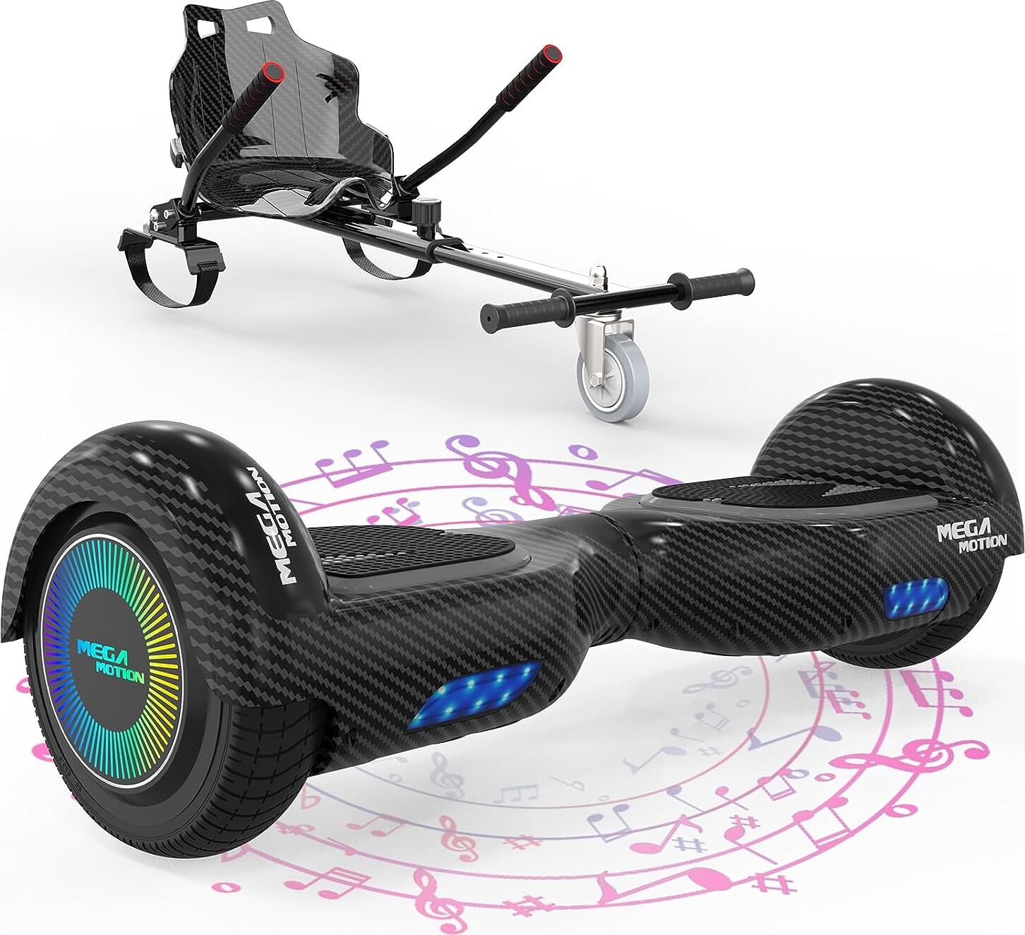MEGA MOTION 6.5 Hoverboard avec siège hoverkart GO-Kart pour enfants avec lumières LED & musique Bluetooth Skateboard