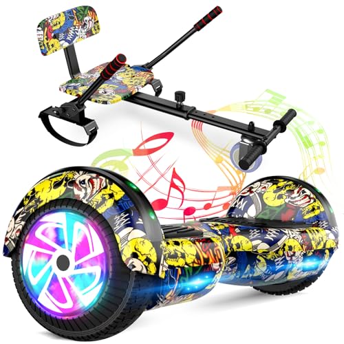Hoverboard avec fixation de siège, 16,5 cm, auto-équilibrage avec haut-parleur Bluetooth et lumières LED pour enfants filles garçons (y compris Go Kart)