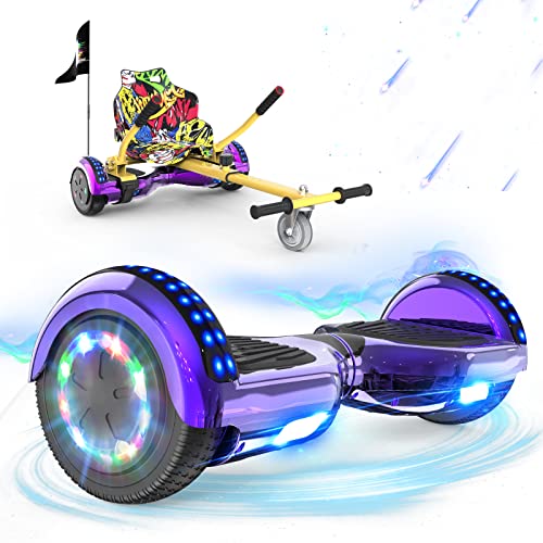 GeekMe Hoverboards avec Hoverkart, Gyropode 6.5 Pouces, Hoverboard avec Haut-Parleur Bluetooth, lumières LED, Cadeau pour Enfant, Adolescent et Adulte
