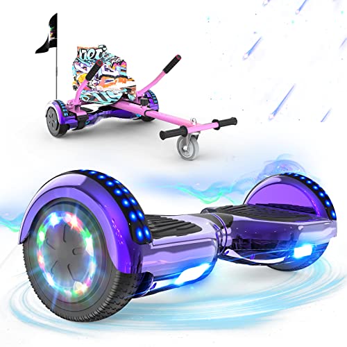 ELEKGO Hoverboards pour enfants, hoverboard auto-équilibré à deux roues de 6,5 pouces avec kart à pédales, avec lumières LED, haut-parleur Bluetooth pour adolescents