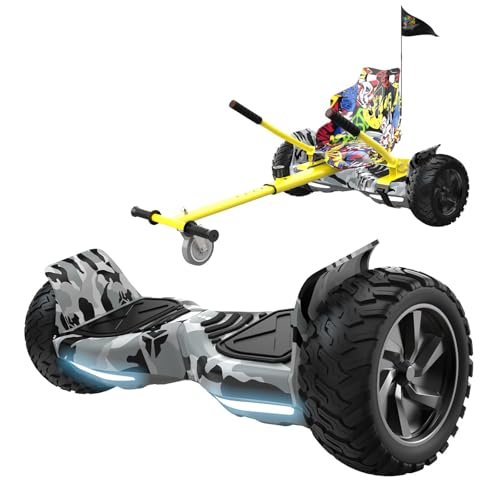 Hoverboard avec siège, hoverboard tout-terrain avec hoverkart, 8,5 pouces avec auto-équilibre, hoverboard tout-terrain avec haut-parleur Bluetooth, LED, cadeau pour les enfants