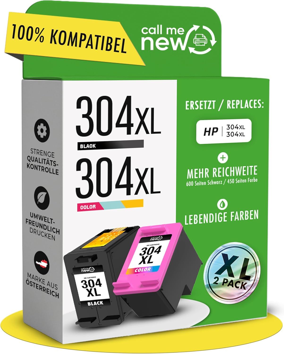 304XL Encre Compatible avec Cartouche HP 304 Noir et Couleur Pack d'encre XL pour HP Deskjet 3760 3762 2630 HP Envy 5030 5010 Imprimante(2-Pack)