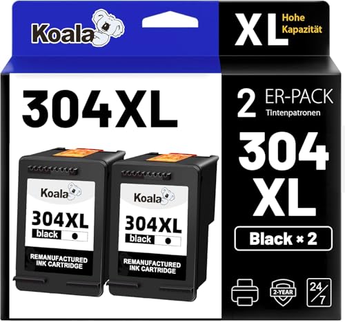 Koala 304XL Remanufacturé Cartouches d'encre Remplacement pour HP 304 XL pour DeskJet 2632 3720 2633 2622 2634 2630 3735 3733 3730 3762 3760 3750 Envy 5030 5020 5032 Imprimante (2Noir)