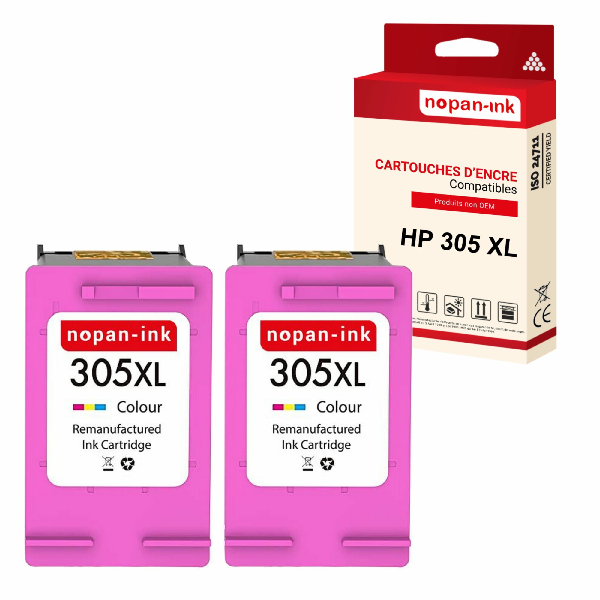 Pack de 2 Cartouches compatible pour HP 305XL Couleur Nopan-ink