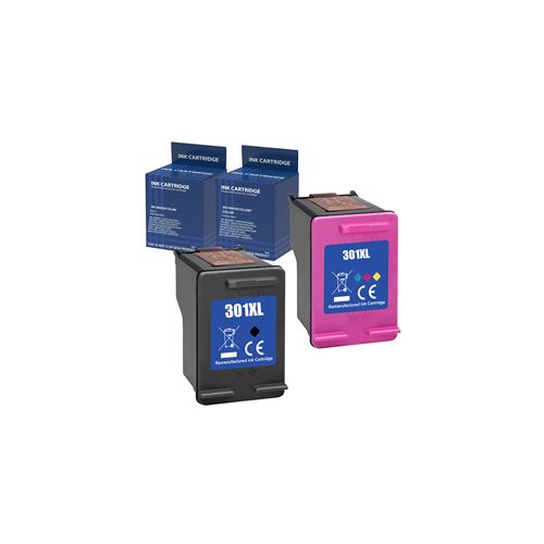 Cartouche d'encre 301 XL remanufacturée for imprimantes HP Envy 5530, Deskjet 2050, 2540, 2510, 1000 et 1050.(1SET)