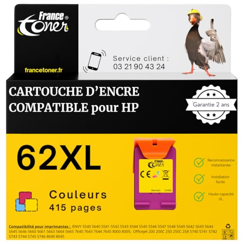 FranceToner - 62XL - Cartouche d'encre Compatible avec HP 62 XL Couleurs - pour HP Envy 5540 5542 5543 5544 5545 5546 5547 5548 All in One One 5640 5642 (62XL Couleurs)