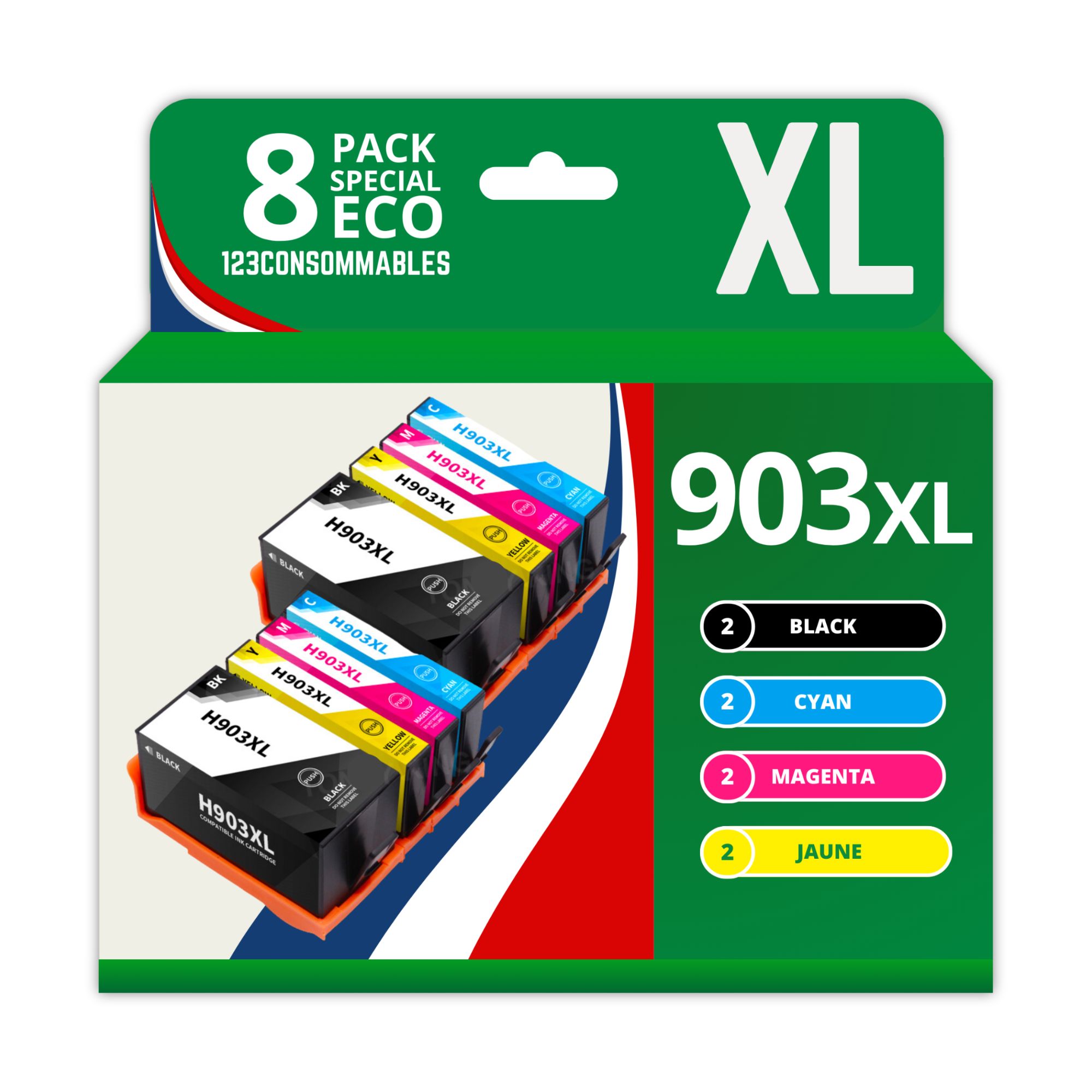 123CONSOMMABLES - 903 XL - Cartouche compatible avec HP 903 903XL Cartouches d'encre pour HP Officejet 6950 6960 Officejet Pro 6960 6970 (pack de 8)