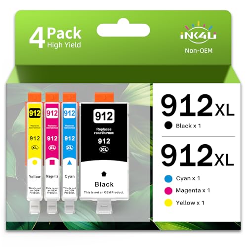 INK4U Cartouches 912XL Compatibles pour HP 912XL 912 Multipack pour OfficeJet Pro 8020 8022 8024 8025 8030 pour OfficeJet 8010 8012 8014 8015 (Noir, Cyan, Magenta, Jaune)