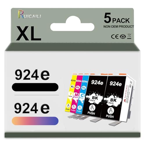 HenceBuy Lot de 5 cartouches 924 compatibles avec HP 924 pour HP OfficeJet Pro 8120 OfficeJet Pro 8122e 8124e 8132e 8134e 8135e 8125e Noir, Magenta, Cyan, Jaune (Lot de 5, pas avec puce)