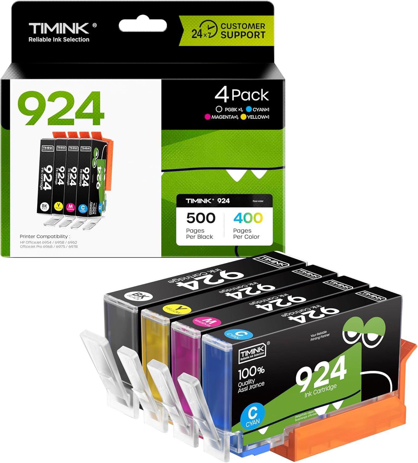 Timink Lot de 4 cartouches 924XL compatibles avec HP 924 Multipack 924 XL pour HP OfficeJet Pro 8120 8122 8123 8125 8128 8130 8132 8133 8134 8135