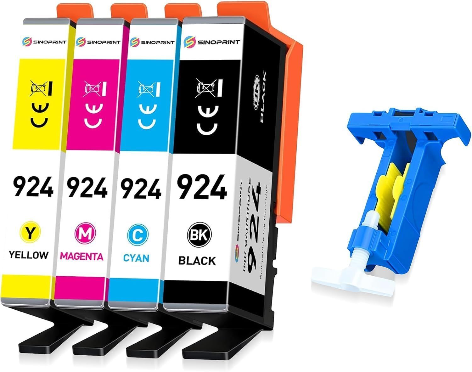 SINOPRINT 924 Cartouches d'encre pour HP 924 Multipack Compatibles pour HP OfficeJet 8122e 8124e 8120e 8125e pour OfficeJet Pro 8130e 8132e 8134e 8138e 8139e (4 Pack, Pas avec Puce)