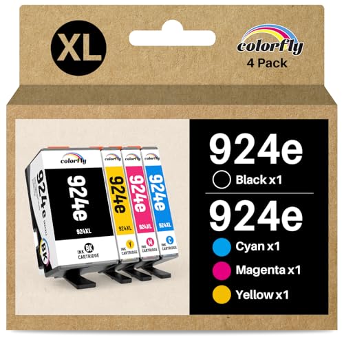 colorfly 924 Cartouches d'encre (sans Puce) compatibles avec Les Cartouches HP 924 pour Officejet Pro 8120 8123 8130 8133 8122e 8124e 8125e 8132e 8134e 8135e 8138e 8139e, 4 Paquets