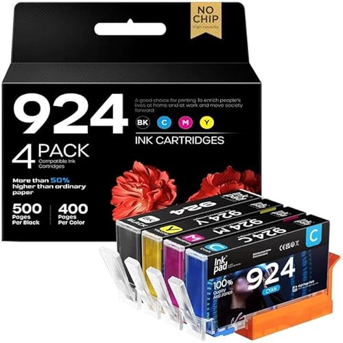 iNKPAD 4 Pack 924 Cartouches compatibles avec HP 924 pour HP OfficeJet Pro 8120e 8122e 8124e 8125e 8132e 8134e 8135e 8138e 8139e pour HP OfficeJet Pro 8120 8123 8133 8130 (Pas avec Puce)