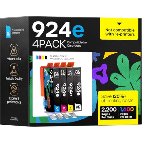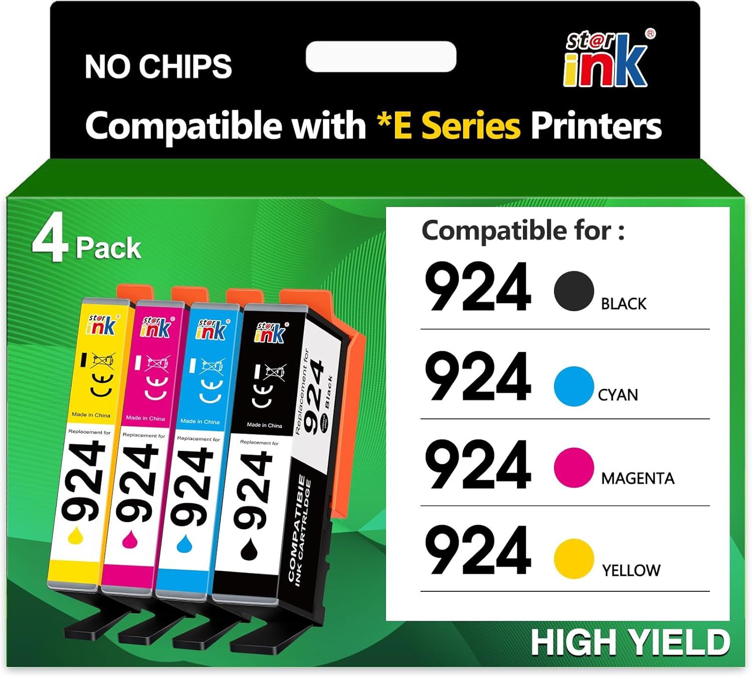 Starink 924 Cartouches d'encre Réutilisable sans Puce Compatibles avec HP 924 924e Cartouches pour HP OfficeJet 8120e 8122e 8124e 8125e pour OfficeJet Pro 8130e 8132e 8134e 8138e 8139e,4 Pack