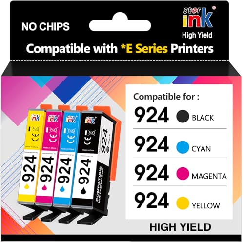 Starink 924 Lot de 4 Cartouches d'encre Compatibles avec HP 924 924e pour HP OfficeJet 8120e 8122e 8124e 8125e pour OfficeJet Pro 8130e 8132e 8134e 8138e 8139e (4 Pièces, Pas de Puce)