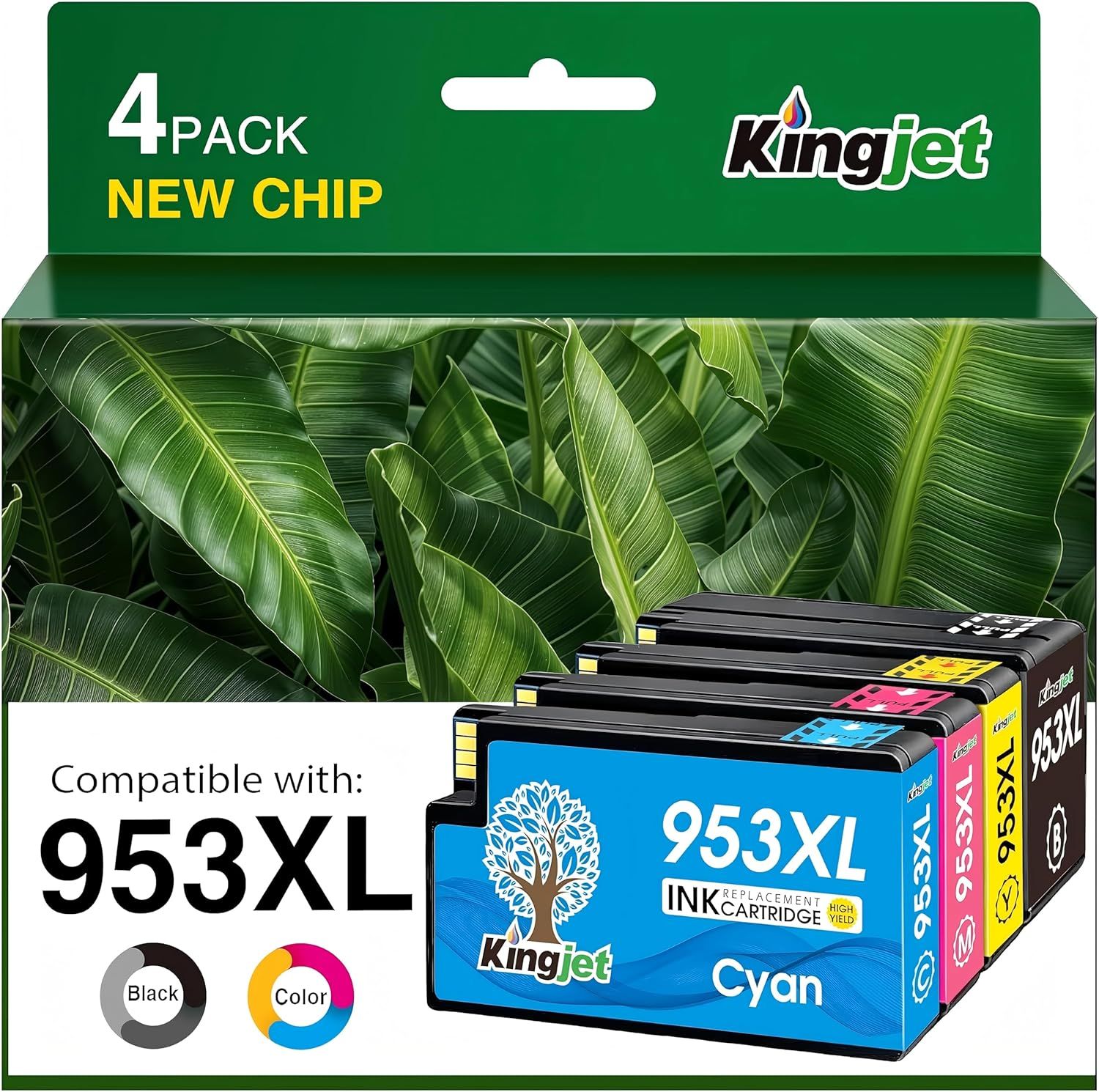 KINGJET 953XL Cartouches d'encre Compatible pour HP 953XL 953 XL Cartouches pour HP Officejet Pro 7720 7740 7730 8720 8210 8218 8710 8715 8718 8719 (Pack de 4 Cartouches)