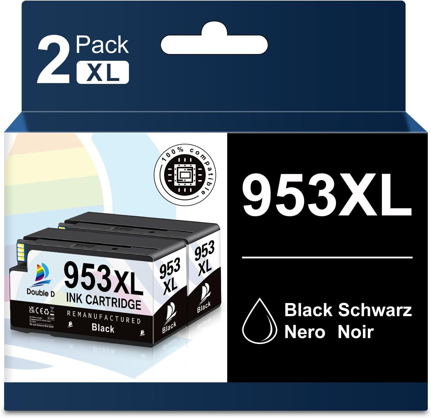 DOUBLE D 953XL Noir Cartouches d'encre pour HP 953XL 953 XL,Non affecté par la Mise à Niveau, pour HP Officejet Pro 7720 7730 7740 8710 8715 8210 8720 8725 8728 8730 (2BK)