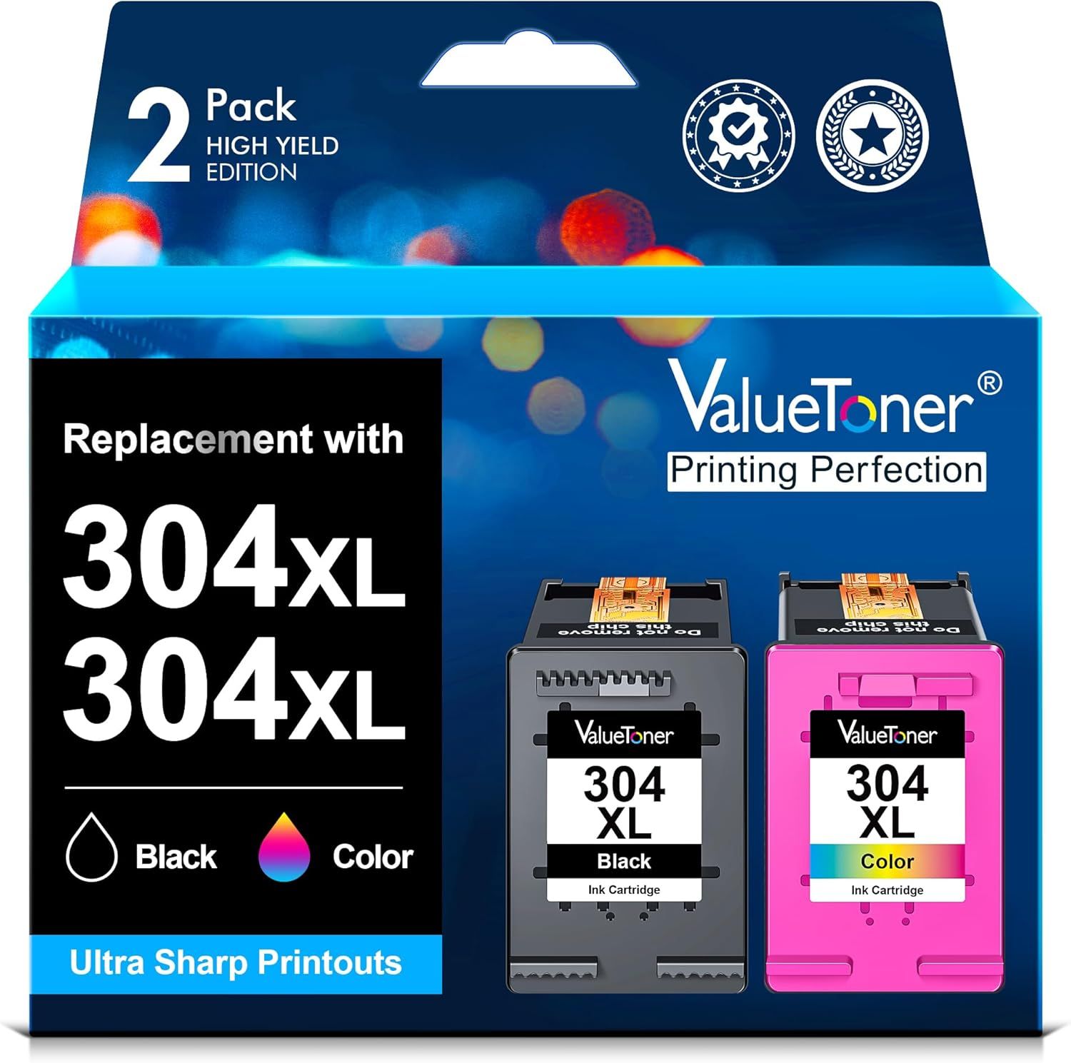 Valuetoner 304XL Remanufacturées Remplacement Cartouche pour HP 304 XL pour Envy 5030 5010 5020 5032 Deskjet 3720 2634 2622 2620 2630 2632 2633 3730 3733 3735 (Noir et Tri-Couleur, 2-Pack)