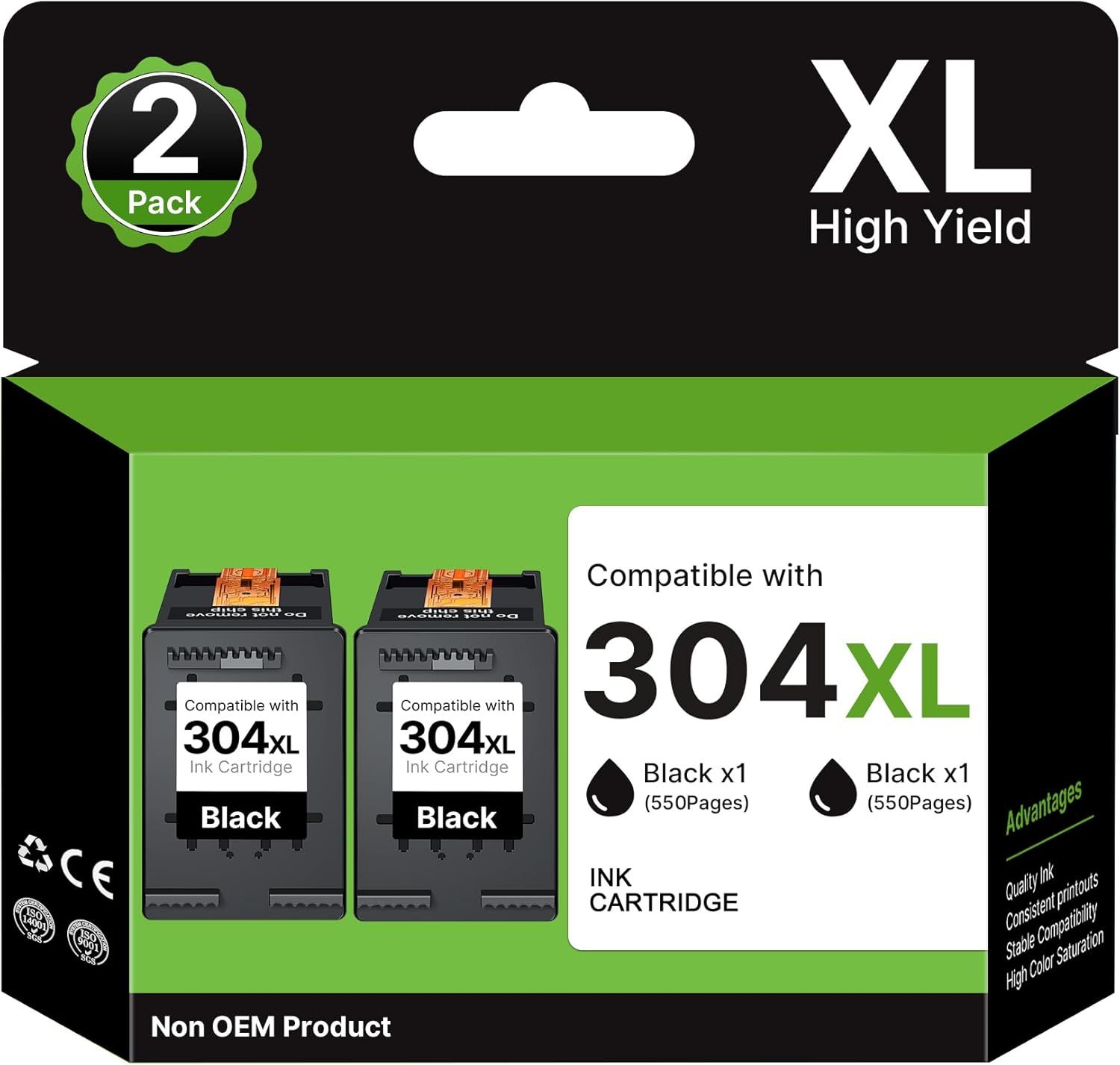JEXNOVASHOP-PHOEVER 304 XL Compatible pour HP 304 304XL pour HP Deskjet 3762 3760 3750 2634 3735 2622 2630 3720 2620 2632 2633 3730 3733 Envy 5030 5020 5010 5032 ¿2-Pack