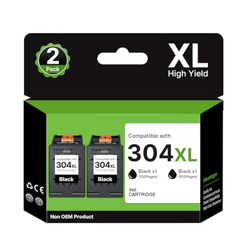 304XL Cartouches d'encre Compatibles pour HP Cartouche 304 XL Noir, 304 Noir pour HP Envy 5030 5000 5010 5020 5032 Deskjet 3760 2620 2622 2634 2630 2632 3720 3730 3733 3735 3750 (2 Noir)