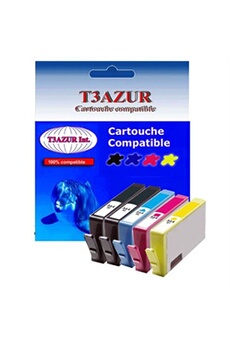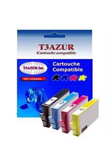 Lot de 4 Cartouches compatibles type T3AZUR pour HP DeskJet 3522 (1Bk+1C+1M+1J)- T3AZUR (Noir et Couleur)