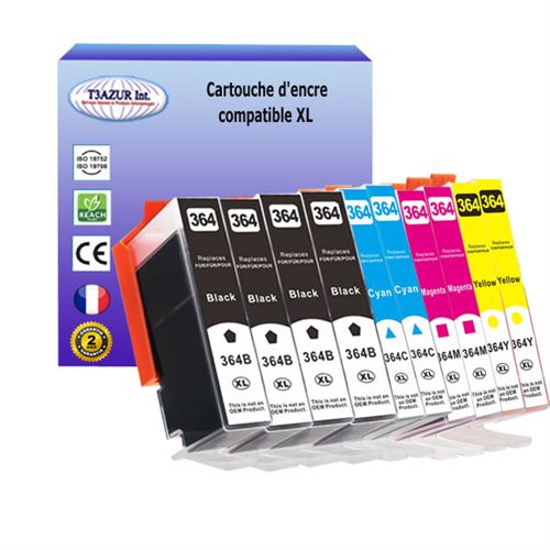 10 Cartouches compatibles avec HP DeskJet 3070A, 3520 , 3522, 3524 remplace HP 364XL ( 4N+2C+2M+2J ) - T3AZUR