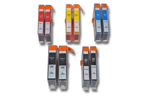 vhbw 10x cartouches compatible pour HP Deskjet 3520, 3522 imprimante - Set cyan, magenta, jaune, noir, photo noir avec puce
