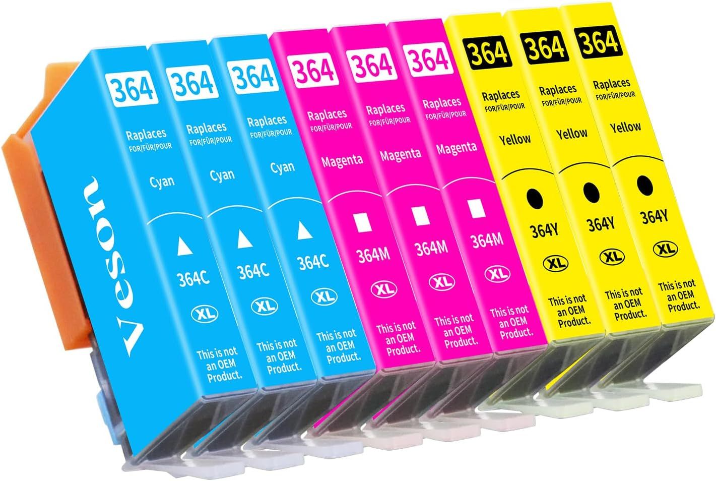 TEPPA-9X 364XL Cartouches d'imprimante compatibles avec Les Cartouches HP 364XL pour Photosmart 5520, 5510, 6510, 6520, 7510, 7520, Deskjet 3520, 3070A, 3522, Officejet 4610 (3 Cyan, 3 Jaune, 3 Magen