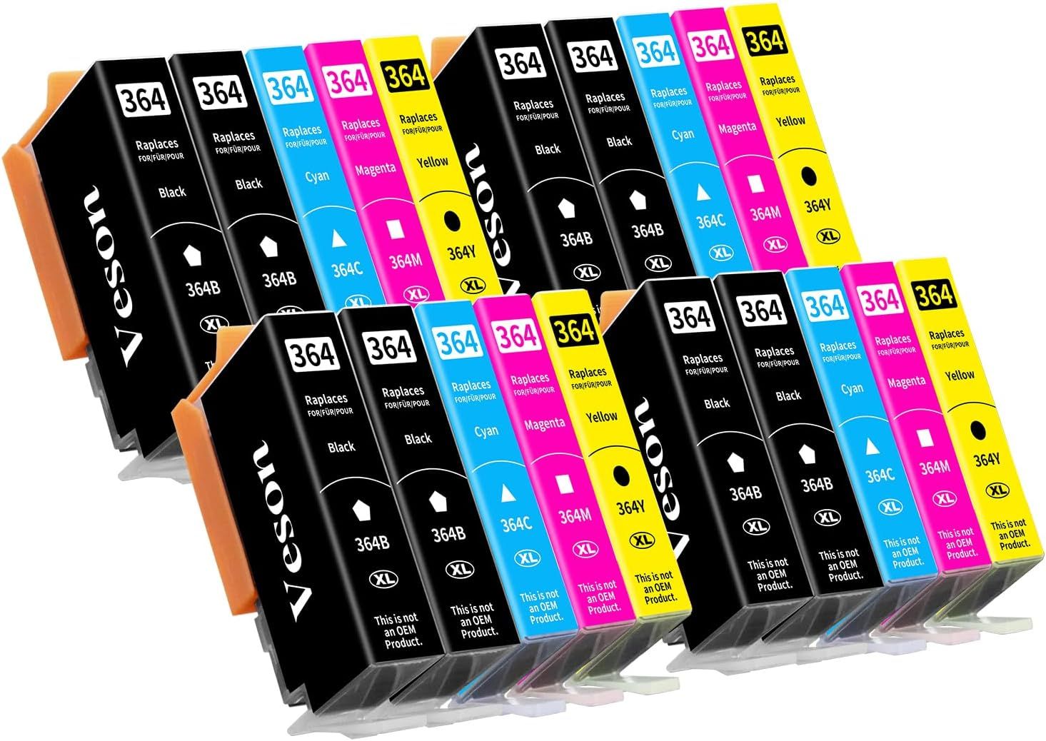 20x 364XL Cartouches d'imprimante compatibles avec Les Cartouches HP 364XL pour Photosmart 5520/10, 6510/20, 7510/20, Deskjet 3520, 3070A, 3522, Officejet 4610/20 (8Noir, 4Cyan, 4Jaune, 4Magenta)